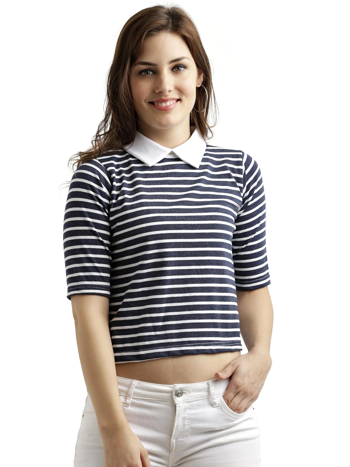 | Generic Name | Miss Chase Women's Navy Blue and White Striped Crop Top (X-Small) |