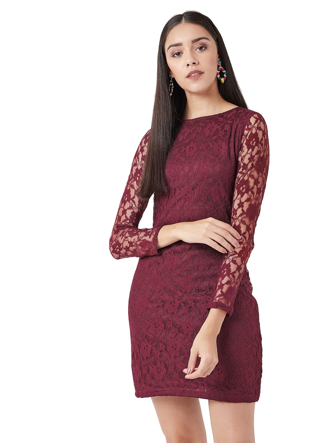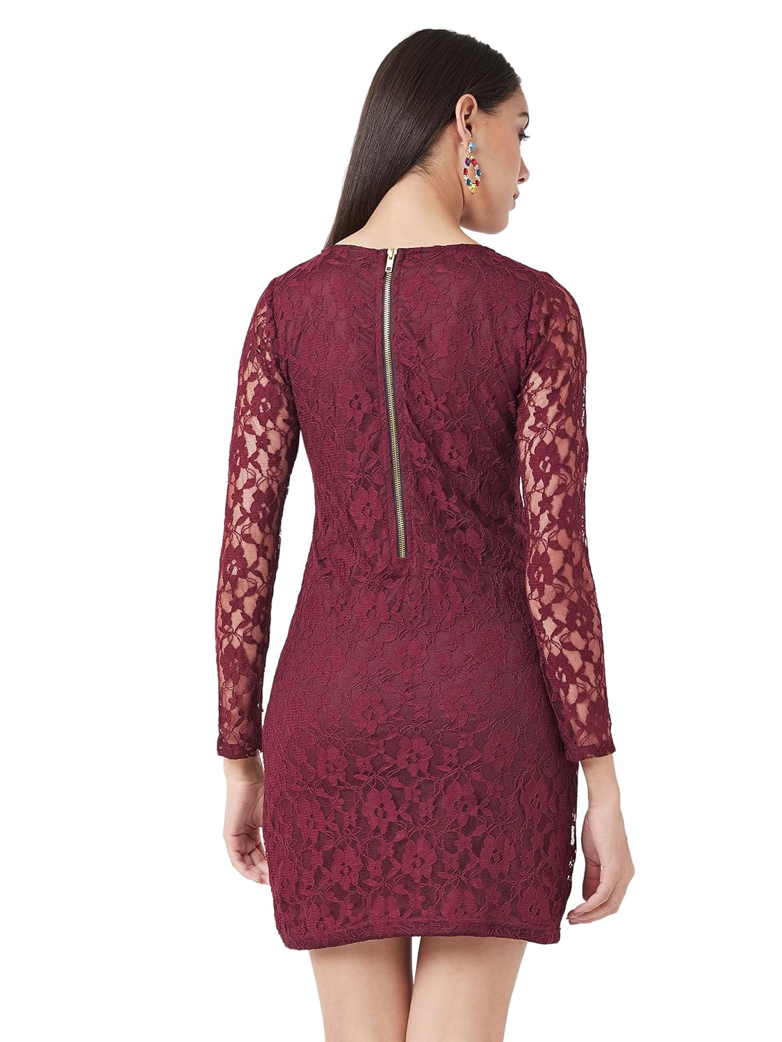 Generic Name: Miss Chase Women’s Maroon Round Neck Full Sleeves Lace Bodycon Mini Dress (MCS14D02-17-64_Maroon_XS)